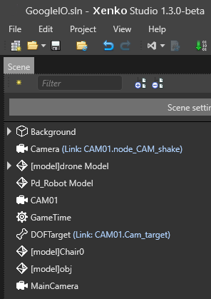 We made several improvements to manage the hierarchy of entities. First, the root node representing the scene has been removed. You can now access the graphics compositor and editor settings via the Scene settings button.