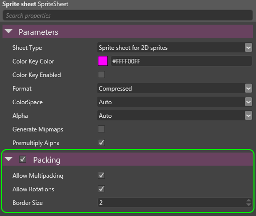 We have added support to create automatically atlas texture generated from sprite sheets. This feature is optional and the user can continue generating their atlas manually if they prefer. It supports sprite border size.